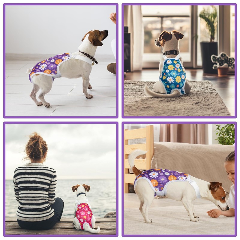 - EASY TO USE: Washable dog diapers with cute patterns not only dress up your pet's clothes but are also a good solution for the puppy to pee and poop anywhere indoors. Fixed halter sanitary pants are very stable and won't fall off easily.