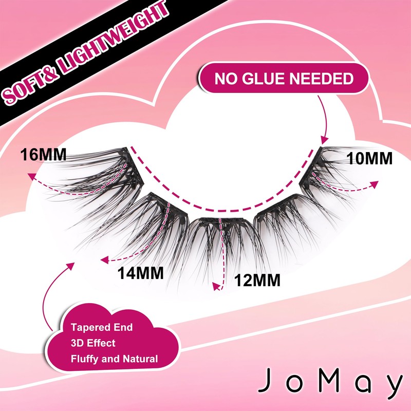 JoMay New Gen 2 Self-Adhesive lash Extension Kit Pre-Glued Wispy Cluster Lashes Press on Lashes Natural Lashes No Glue 1 Step DIY Lash Easy to Apply & Remove Long-Lasting Hold 64Pcs (X2-10-16mm MIX)