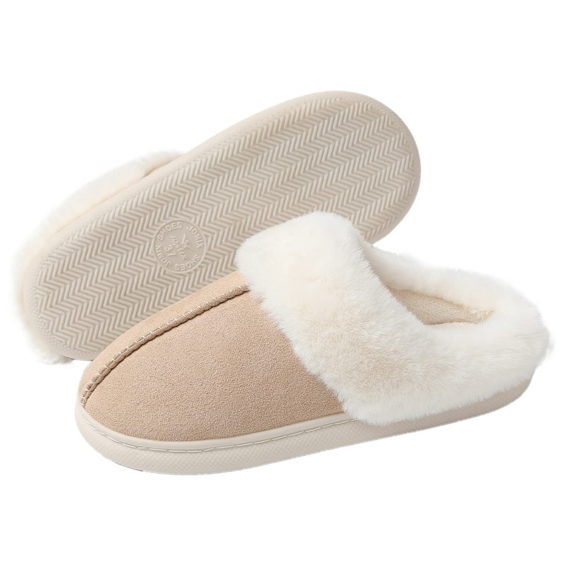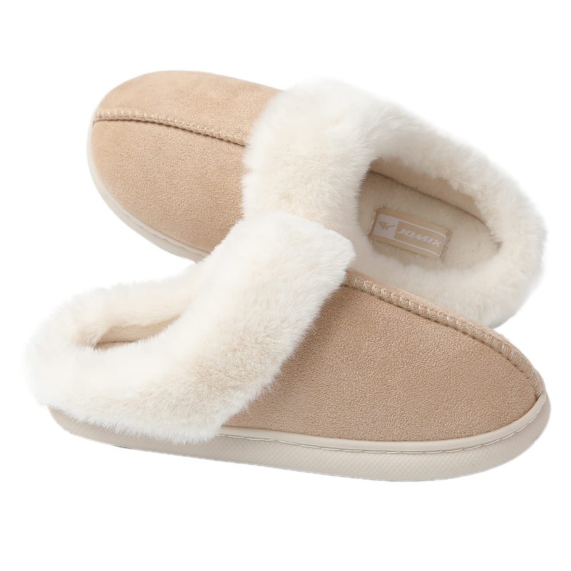 JOMIX Women's Winter Slippers, Soft Flat Plush Fluffy Slippers with Lined, Warm Faux Fur Slippers, Guest Non-Slip Slippers, Beige 01