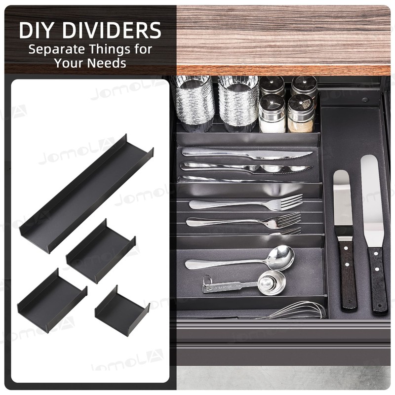 - With DIY Removable Dividers: Sliding cabinet drawer design with removable dividers, allowing customers to freely design the using compartments of the drawer, remove or install the dividers to separate the compartments according to own personal habits or actual needs, effectively using the vertical space to store things, making items well organized and stored in an orderly manner