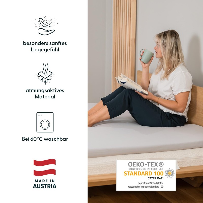 - Service and care: Jona topper bed sheet with elastic band is produced in Austria environmentally friendly and is suitable for all types of mattresses with a height of up to 30 cm. The fitted sheet for toppers is made from 95% cotton and 5% elastane. You can machine wash it at 60 °C and sleep for 30 nights.