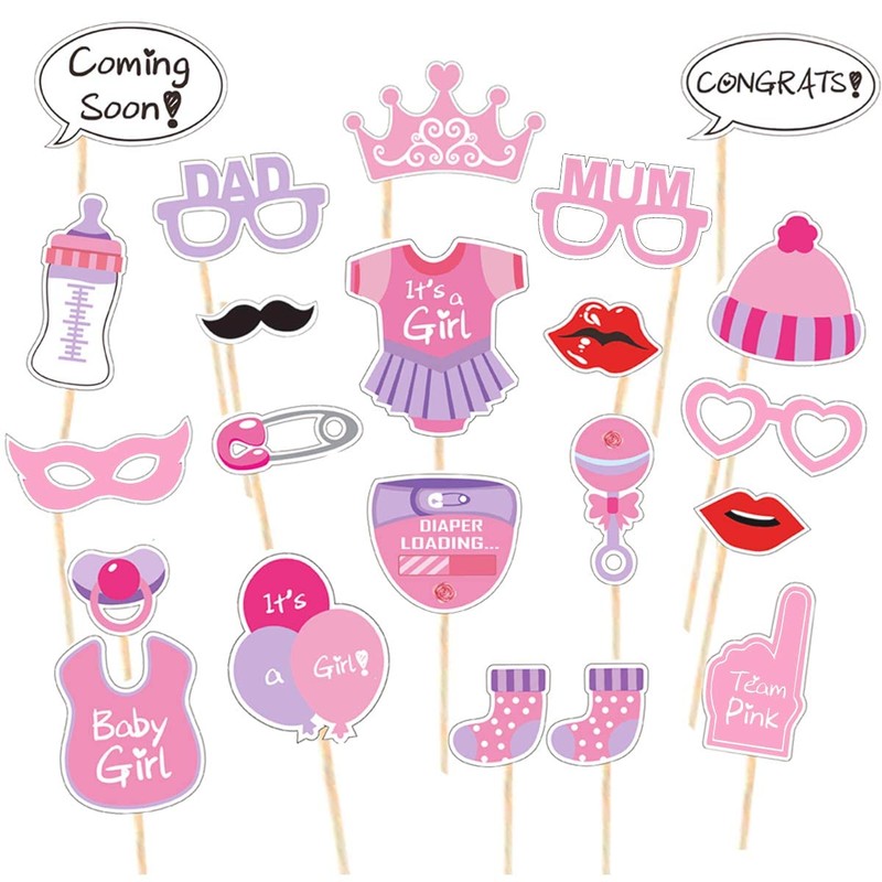 Jonami Baby Shower Photo Props Girls - Baby Shower Photo Accessories, Pink Masks, Newborn Photo Supports, Photo Booth Props for Baby Party, Baby Shower Photo Booth Supports