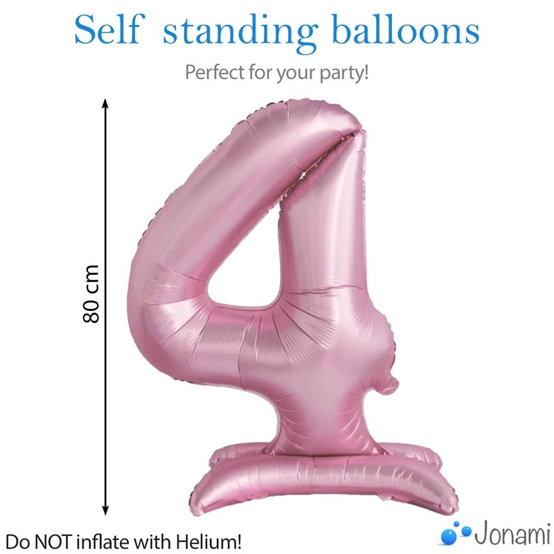 Jonami Luftballon 4. Geburtstag Zahl 4 Rosa Stehende XXL Riesen Folienballon 82cm Geburtstagsdeko Mädchen Ballon Zahl Deko zum Geburtstag.