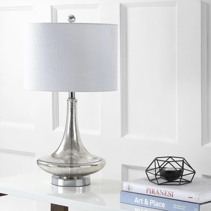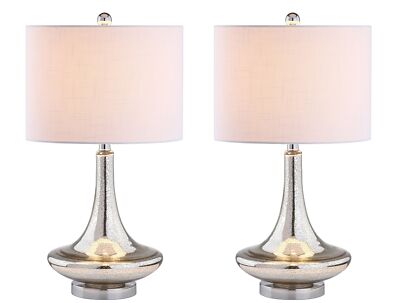JONATHAN Y JYL1081A-SET2 Set of 2 Table Lamps Cecile 25.5" Glass Teardrop LED Table Lamp Contemporary Bedside Desk Nightstand Lamp for Bedroom Living Room Office College Bookcase, Mercury Silver