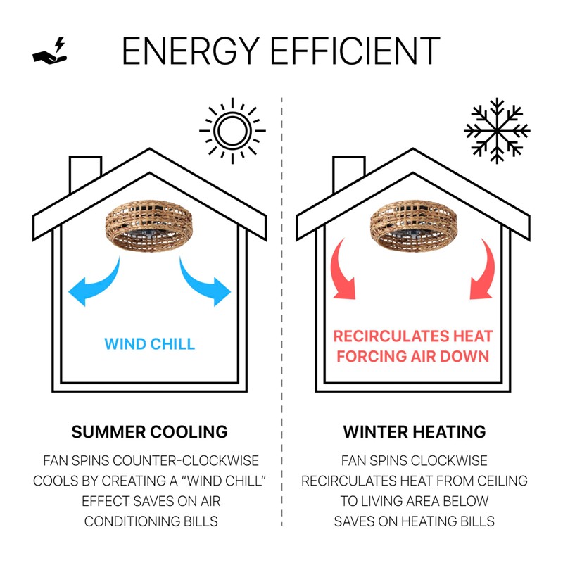- This bohemian LED ceiling fan has brown woven seagrass on a black metal frame with clear ABS blades