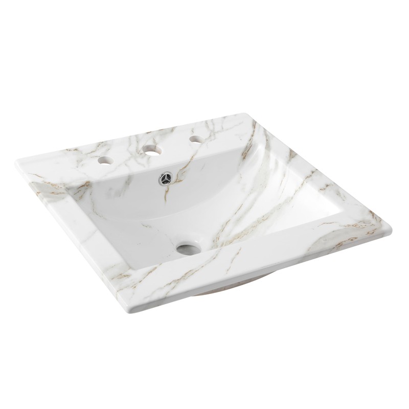 - This sink basin is a classic semi-gloss faux white marble ceramic, bringing a traditional touch to any bathroom