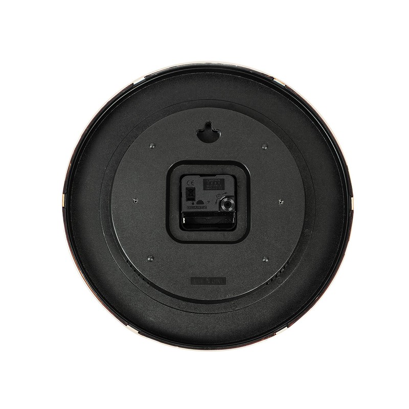 - The Studio wall clock is a modern design with an easy-to-read Arabic dial with large numbers. It features an acrylic case with a contemporary matt finish, metal hands and a glass lens. This is a ticking clock; it makes a classic ticking sound.
