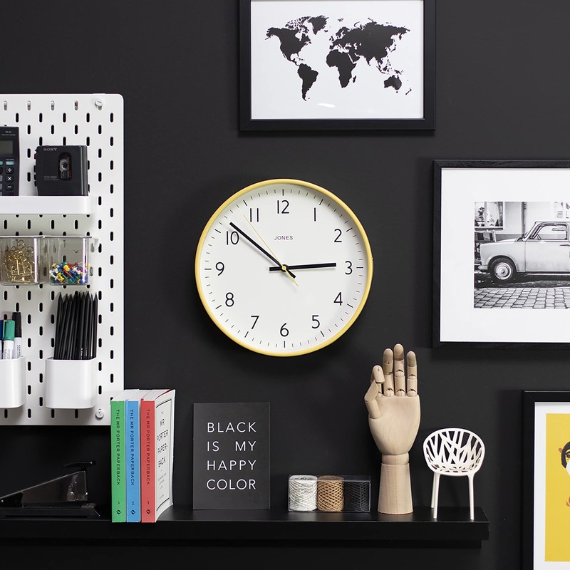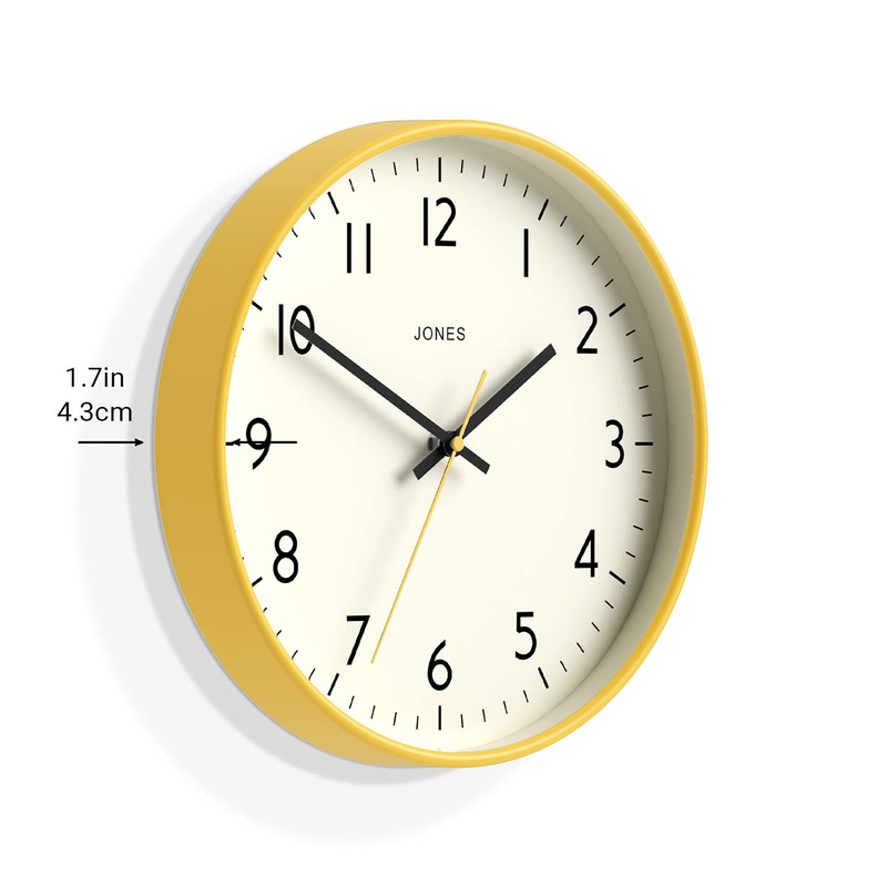 Jones Clocks® Studio Round Wall Clock - Round Clock - Modern Clock - Designer Clock - Kitchen Clock - Living Room Clock - Office Clock - Easy to Read Dial - Contemporary Design - 30cm Yellow