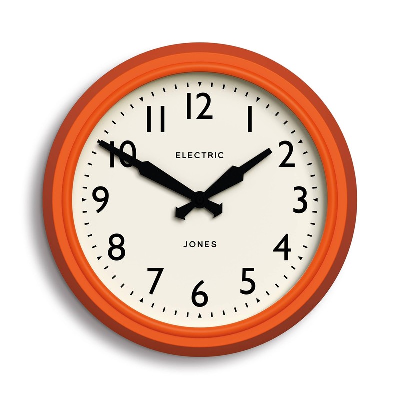 JONES CLOCKS® Telecom Wall Clock | Round Vintage Retro Clock | 10.5 inch | Orange | Modern take on a Vintage Classic for Kitchen, Living Room or Office