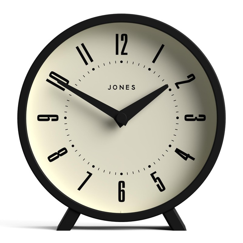 Jones Clocks® 'Venus' desk clock - modern round design in black, stylish retro look for shelf, table, mantel or bedside