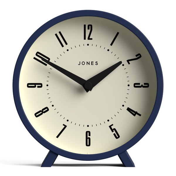 Jones Clocks® 'Venus' desk clock - modern round design in blue, stylish retro look for shelf, table, mantel or bedside