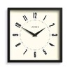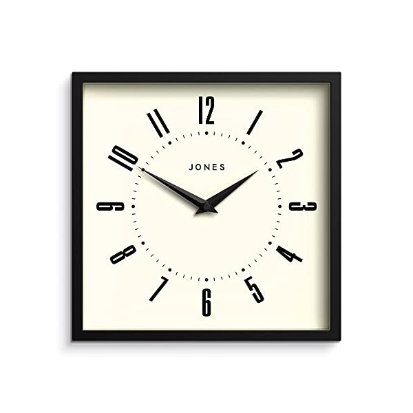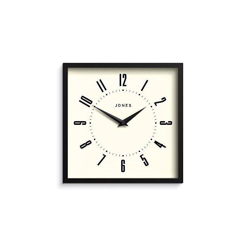 Jones Clocks® Box Retro Dial Wall Clock - Square Clock - Kitchen Clock - Office Clock - Retro Clock - Designer Clock - Colourful Case - Arabic Numeral Dial (Black)