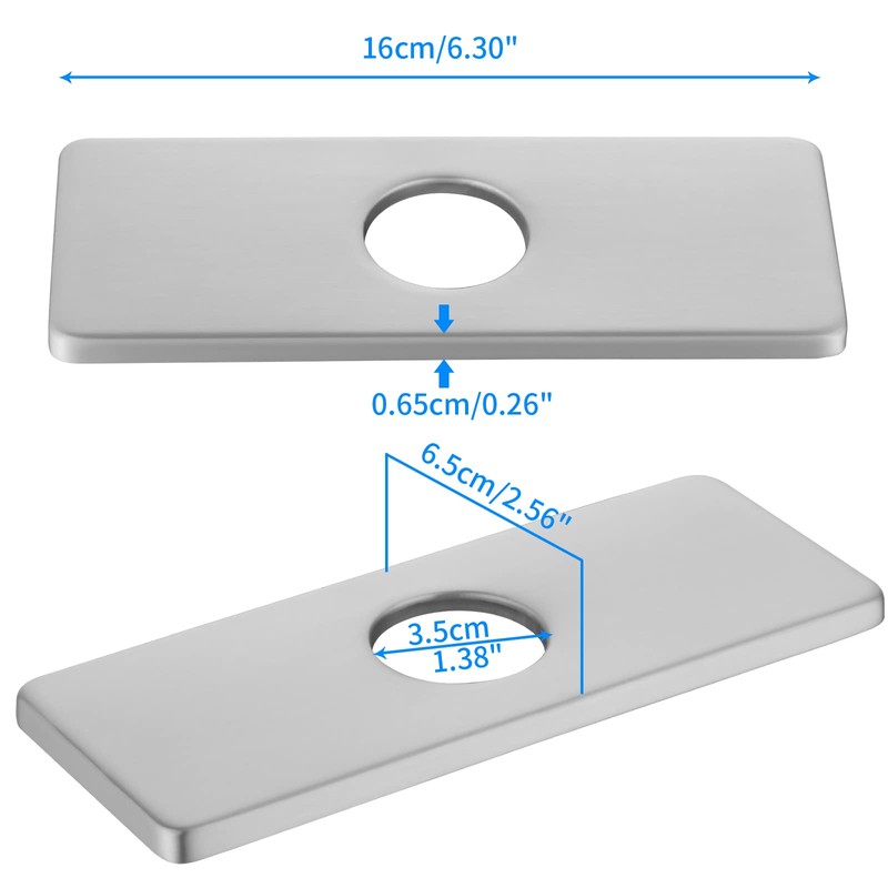 - 【Suitable Size】: The bathroom sink deck plate length: 6.30"(160mm), width: 2.56"(65mm), thickness: 0.26"(6.5mm), hole diameter: 1.38''(35mm). Perfectly matches for most single hole bathroom sink faucet.