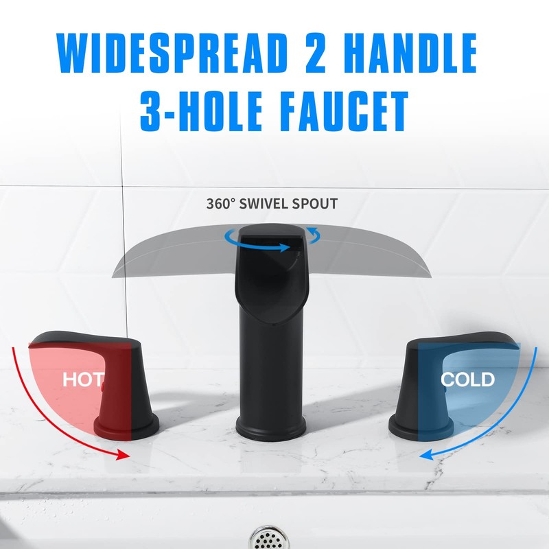 - 【Widespread 3-Hole Installation】: 3-hole mounting, compatible with widespread center installations between 6"-16". The hole diameter needs to be between 1.25"~ 1.38". And includes a pop-up drain with overflow hole that fits 1.65"~1.9" bathroom sink mounting holes diameter. The dual handle can be rotated 90° forward for easy control of water temperature and flow. The package includes all the accessories you need for installation, so you can DIY quickly and save extra money without a plumber.