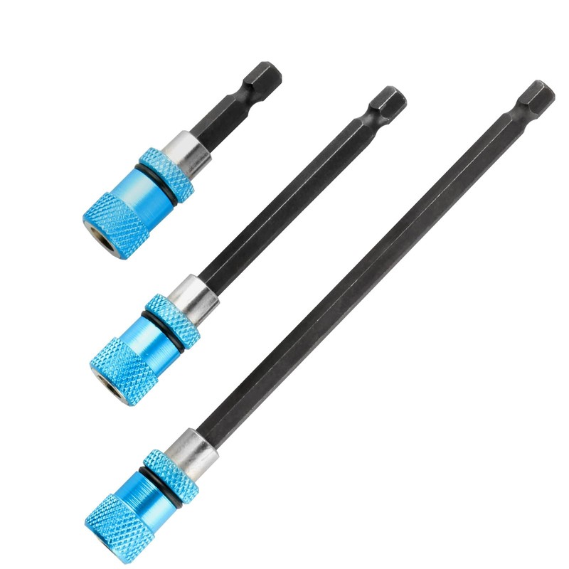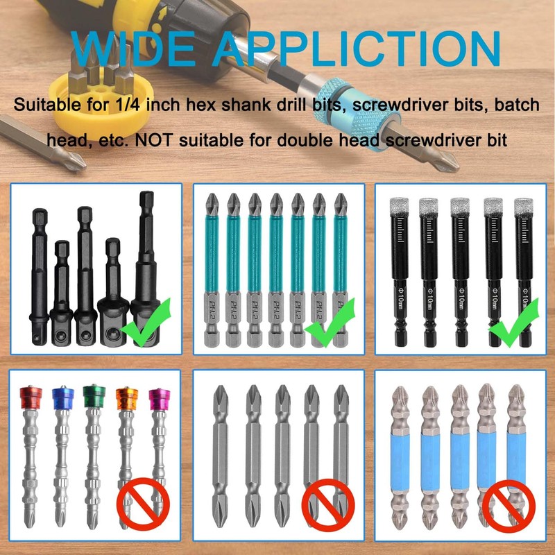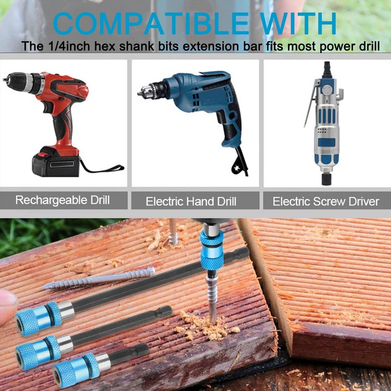- Wide Application: 3 different length drill bit holder (60/100/150 mm) to meet your various needs.Suitable for 1/4 inch hex shank drill bits, screwdriver bits, batch head, socket adapter,etc. NOT suitable for double head screwdriver bit