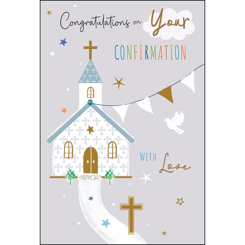 - RELIGIOUS DESIGN: This lovely card features the message 'Congratulations on your Confirmation - with love' and is finished with embossed, metallic gold foil details.