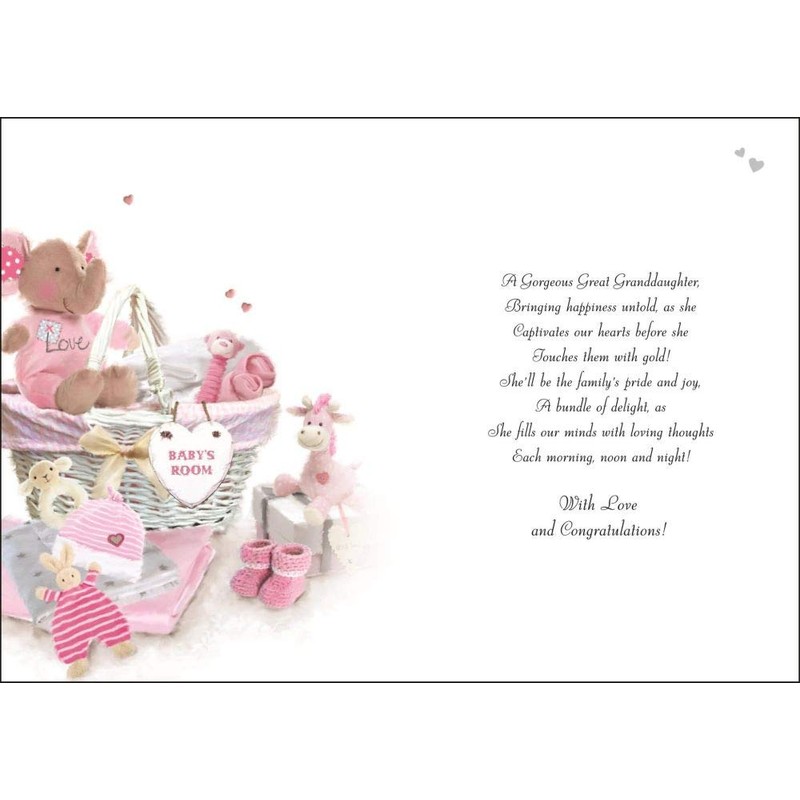 - Thank you for a baby Great Granddaughter to cherish card with traditional pink teddy bear, balloons and presents design