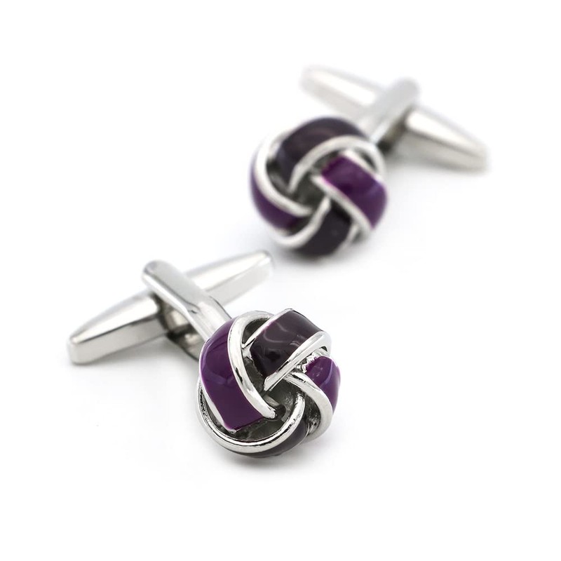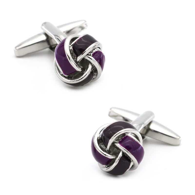 - Classic woven Black and Purple knot cufflinks. A perfect accessory for your french cuffs shirt. Skillfully crafted from high quality materials. Classic woven gold knot cufflinks for men.