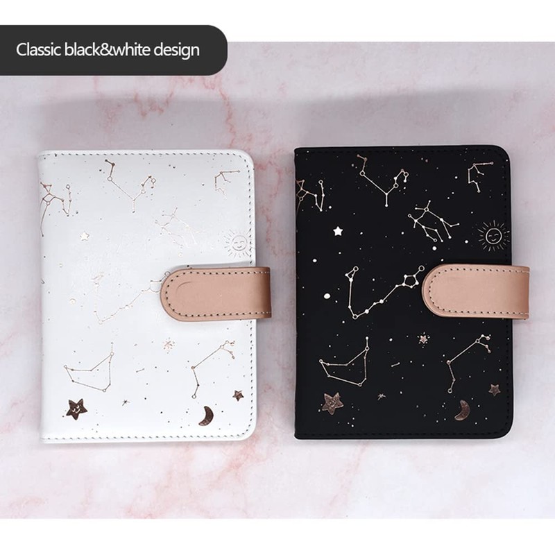 jooact A6 Undated Daily Planner Starry Sky Journal Monthly & Daily Planner Small Diary Agenda, Self-filling Date, Soft Pu Leather Cover, Size 64K 4.1''x5.5'', Black+White