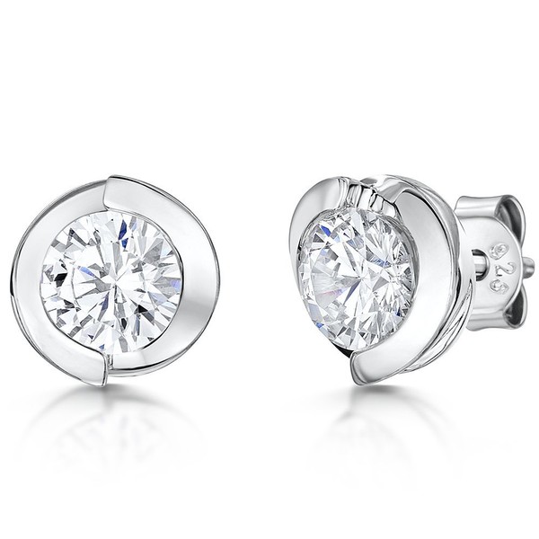 JOOLS by Jenny Brown ®- Sterling Silver Stud Earrings -Set in A Twisted Rub Over Setting With A Single Cubic Zirconia Centre Stone