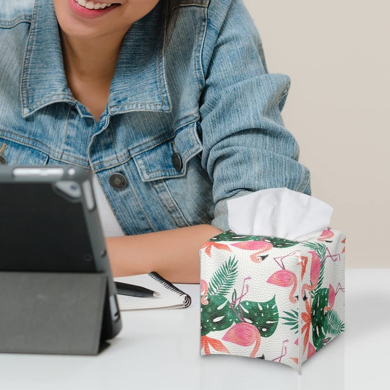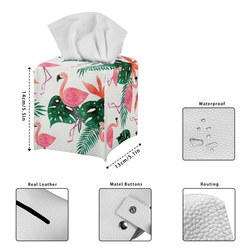 JooMeryer Square Tissue Box Cover Pink Flamingos Tissue Box Covers Modern Decorative Paper Napkin Holder Case for Dresser,Monstera Flamingo