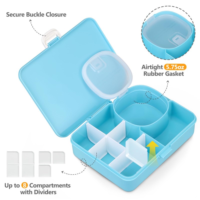 - Up to 8 Customizable Compartments — The kids lunchbox features detachable dividers, allowing you to adjust the compartments from 3 to 8, perfect for a variety of foods like sandwiches, fruits, veggies, snacks, and treats.