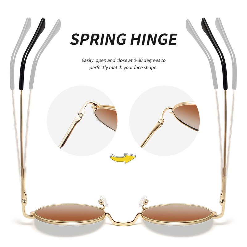 - Lightweight & Comfortable: Due to the thin frame, Joopin metal sunglasses are super lightweight yet strong. Spring hinges with ergonomic design, the flexible arms can increase or decrease 30 degrees, so joopin circle sunglasses can fit any head size and face shape, every edge is smoothed and polished, all these detail ensure long-lasting wear and comfortable experience. Wearing Joopin sunglasses has never been more relaxing, secure and enjoyable than now