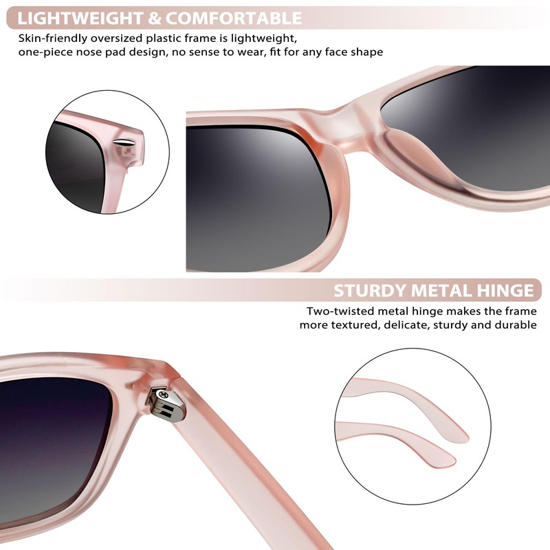 - Upgraded Materials: Joopin polarized sunglasses are made of ultra light TAC polarized lenses, UV protective coating, scratch resistant and anti reflective with one piece nosepiece that fits your face perfectly, reinforced metal hinges, durable enough, comfortable, snug and stress free. Joopin classic styles of sunglasses for men and women will last a long time