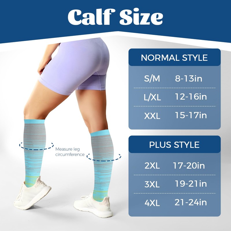 - MULTIPLE SIZE: Choose the right fit for maximum comfort! Our compression socks are available in six sizes, ensuring a precise fit for everyone.For tighter compression, opt for one size smaller.Whether you need extra support or a snug fit, we’ve got you covered for all-day comfort.