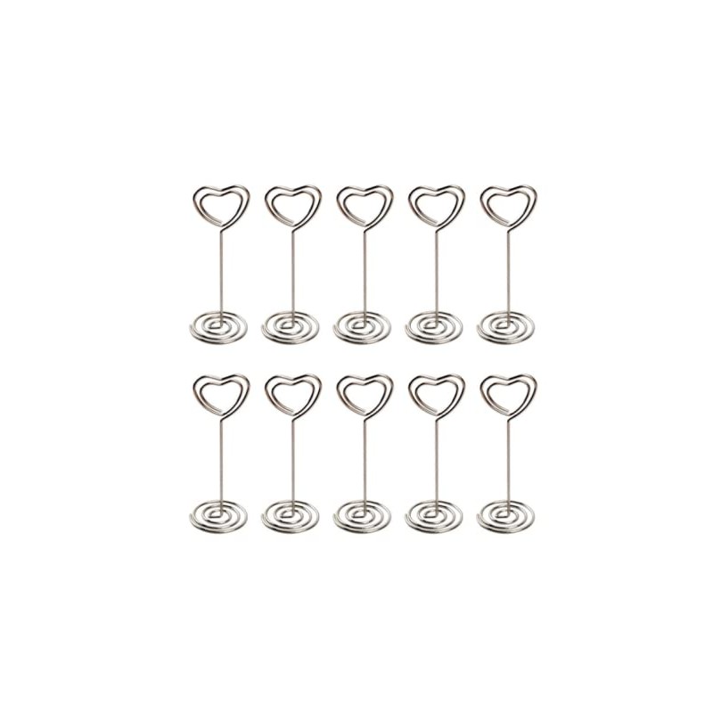 JORCEDI 10 Pack Heart Shape Table Number Card Holders Photo Holder Stands Place Paper Menu Clips For Wedding Party Sign Food Cards Label Silver