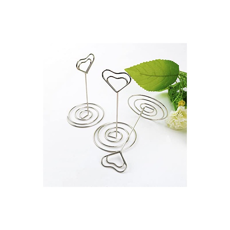 The simple heart shape design make this wire table photo holders really stylish, ideal for Christmas card display, Thanksgiving centerpieces for tables at dinner party.Designed for formal occasions but charming enough to use everyday. Perfectly accompanies decorative centerpieces, ornaments and elegant table settings.Good-looking desktop photo clips with mini cute clip and spiral base.circle shaped clip keeps your photo upright and stand up steadily.