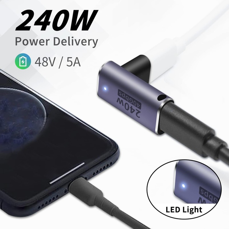- 「Product design」supporting fast charging up to 240W (5V/3A-20V/5A) and backward compatible with USB-C power devices.supporting 4K@60Hz and even 8K video output. Smooth transmission of movies, music, and other content is achieved in just a few seconds. Note that the data transfer speed also depends on the USB device and cable support. This L-shaped right angle USB-C adapter is designed with a bent head, which effectively prevents bending and breaking at the corner of the wall. plug-and-play design, a unique LED light design that perfectly displays the charging status of your device.