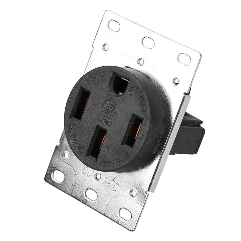 - 「Product application scope」NEMA 14-50R 50A 125V/250V receptacle,assures compatibility with (EV) Electric Vehicles as well as electrical dryers, RV's, Ranges, welders and a broad range of other applications. Fits all 1-gang wallplates. We highly recommend the installation of this dryer outlet with a 2 gang wall plate to make the installation process easier with more space.