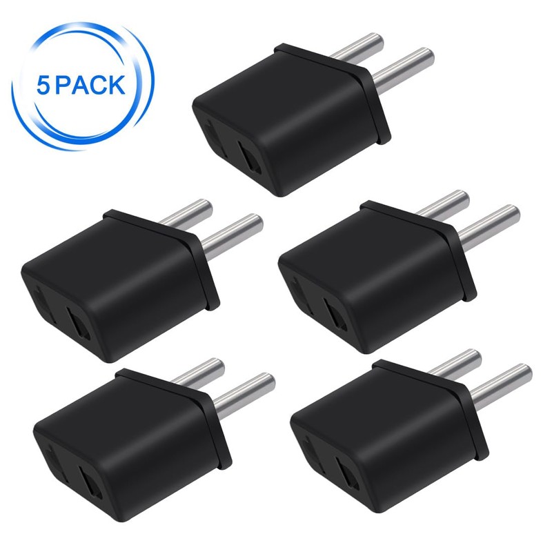JORINDO (Black-5pcs) Europe Germany Travel Plug Adapter,European Plug to 2 Holes Adapter,2 Cylindrical Plug 4.8MM,Germany Male Plug,EU Germany Plug to USA/Brazil 2 Hole sockets Trave Plug