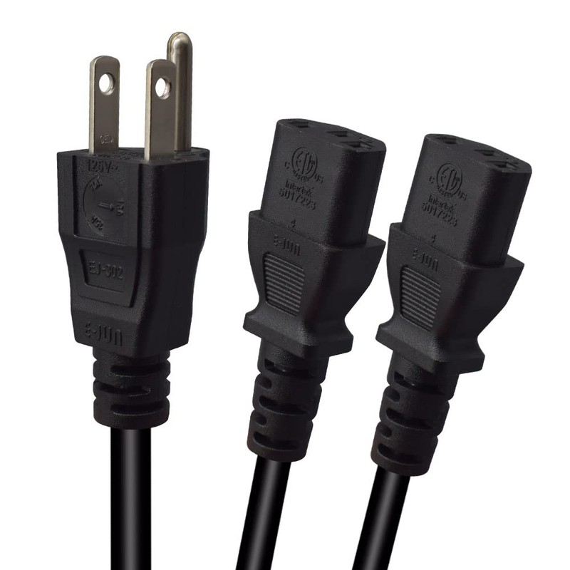 - 「Product design」The length of 6.5ft(2M) easy to extend,To connect two electrical devices at the same time. Such power cords are typically used in home or office environments, especially where there is a limited number of wall outlets, to provide more power interfaces. Users can connect 2 C13 jack devices such as TV, computer, stereo and printer to the same power socket through this power cord, which is easy to use and manage. Connect to two monitors securely without placing strain on the cable,Helps reduce cable clutter