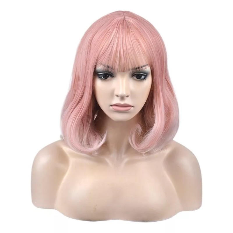 - Modelo: Peluca de onda suelta Pelucas cortas de Bob con flequillo de aire Peluca hasta el hombro para mujeres Peluca de cosplay sintética ondulada y rizada para niñas Pelucas de disfraces