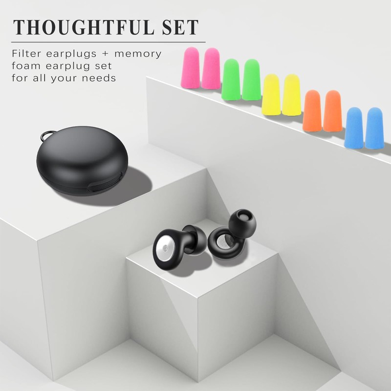 - 【Complete Noise Control Kit】:Your ear plugs for sleeping set includes 1 pair of filter earplugs, 4 silicone tips (XS/S/M/L), and 5 memory foam earplugs pairs - triple defense against noise;Experience up to 35dB noise reduction to conquer airplane engines, office chatter, or snoring partners;The versatile combo adapts to any ear shape and noise level, creating instant focus zones wherever you go