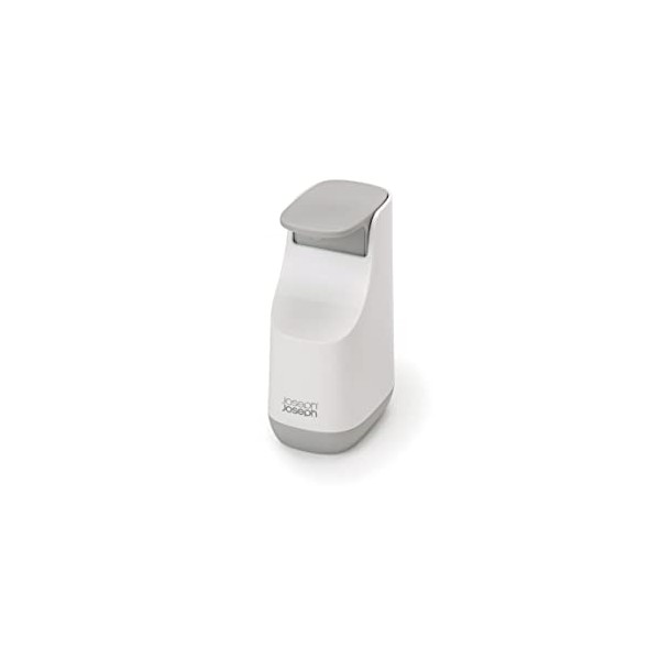 Joseph Joseph Bathroom Slim, Compact Soap Dispenser, Easy-push Pump Head, Non Drip Nozzle, Fill-level Window, Refillable, White/Grey