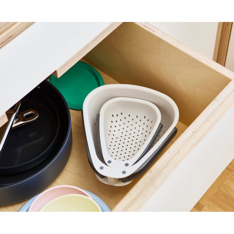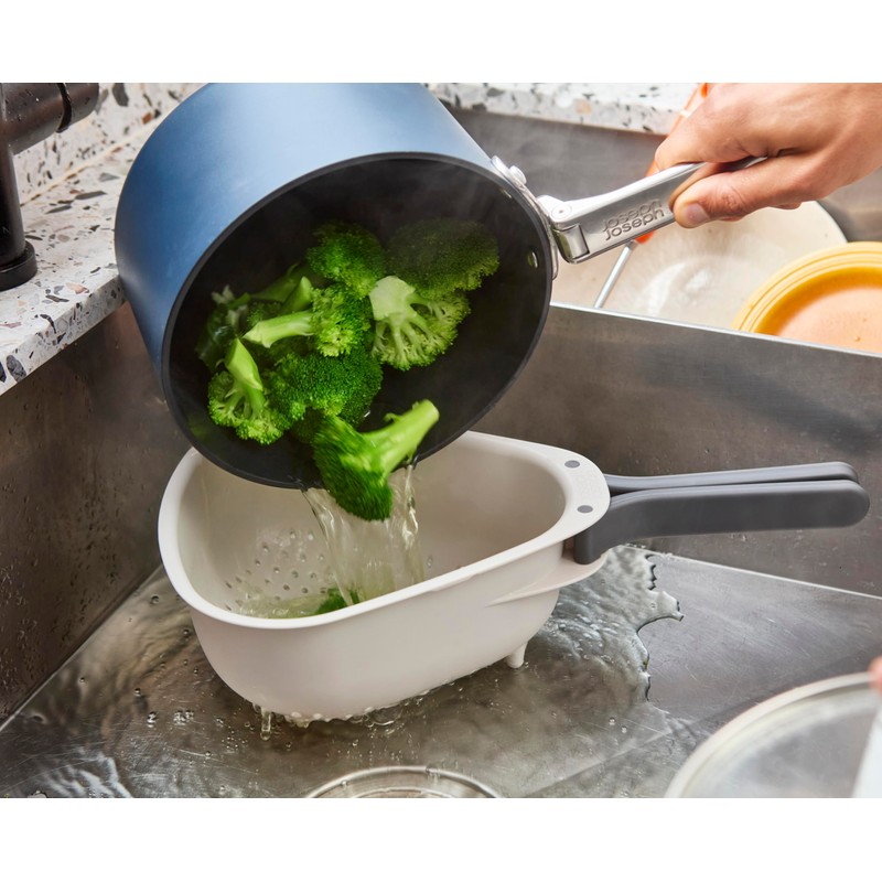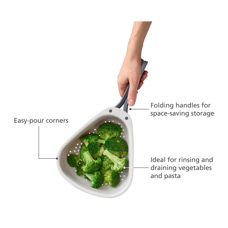 Joseph Joseph Droplet Compact Colander with Folding Handles, Space-Saving Design, Easy-Pour Corners, for Draining Vegetables, Pasta, Fruits