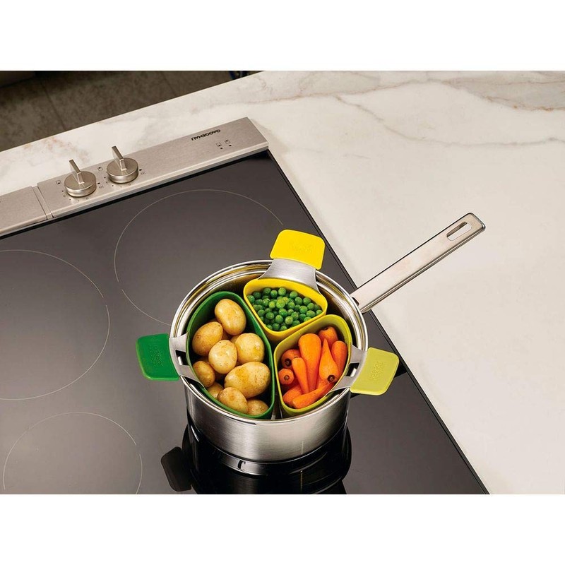 Joseph Joseph Nest Steam Stackable Steamer Basket Set with Three Compartments (3 Piece), One Size, Green