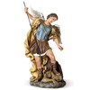 - KEY FEATURES: This gorgeous statue depicts St. Michael defeating Satan and crushing Satan's head with his foot; measures approximately 15.5" high x 8.75" wide x 6.5" deep.
