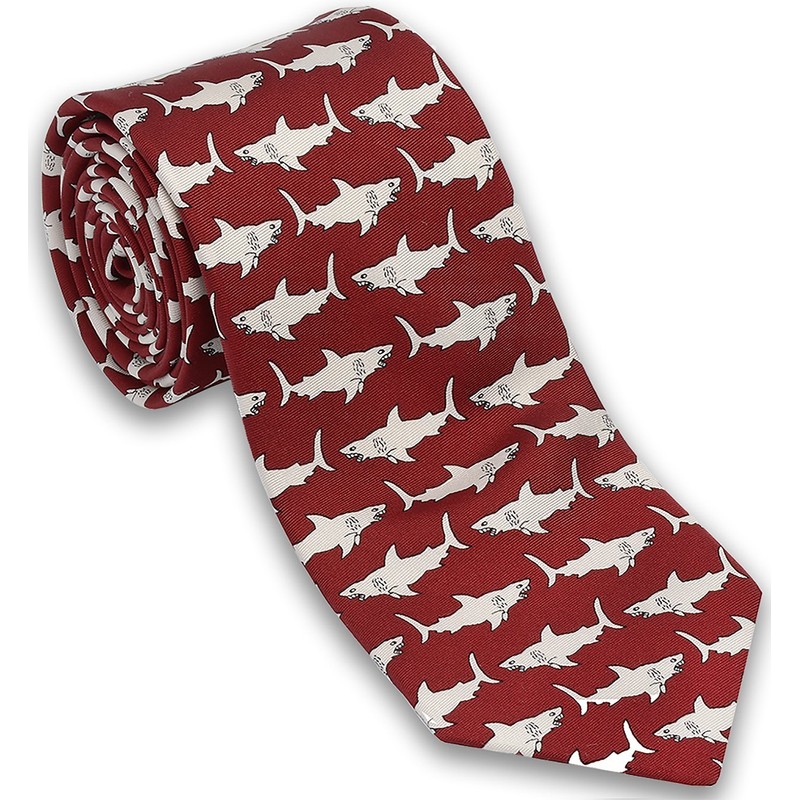 Josh Bach Men's Sharks Swimming Marine Tie, Silk Necktie in Red, Made in USA
