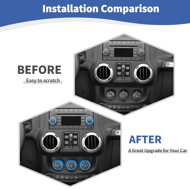 • [HIGH QUALITY] JOSHELA for Wrangler JK Radio Audio AC Knob Cover Trim Ring made of high-quality ABS plastic and used polish process for deformation protection, anti-corrosion, and years of trouble-free use