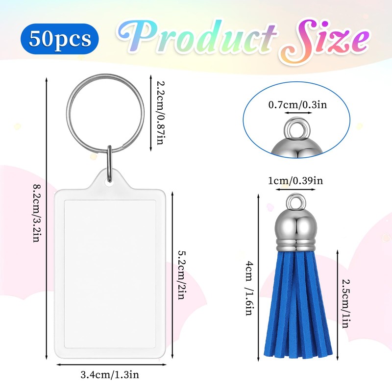 - Package Included: you will receive 50pcs acrylic keychain blanks and 50pcs keychain tassels, sufficient quantity to meet your various DIY personalized keychain needs, and also a great commemorative gift for your friends, family, relatives, colleagues and others