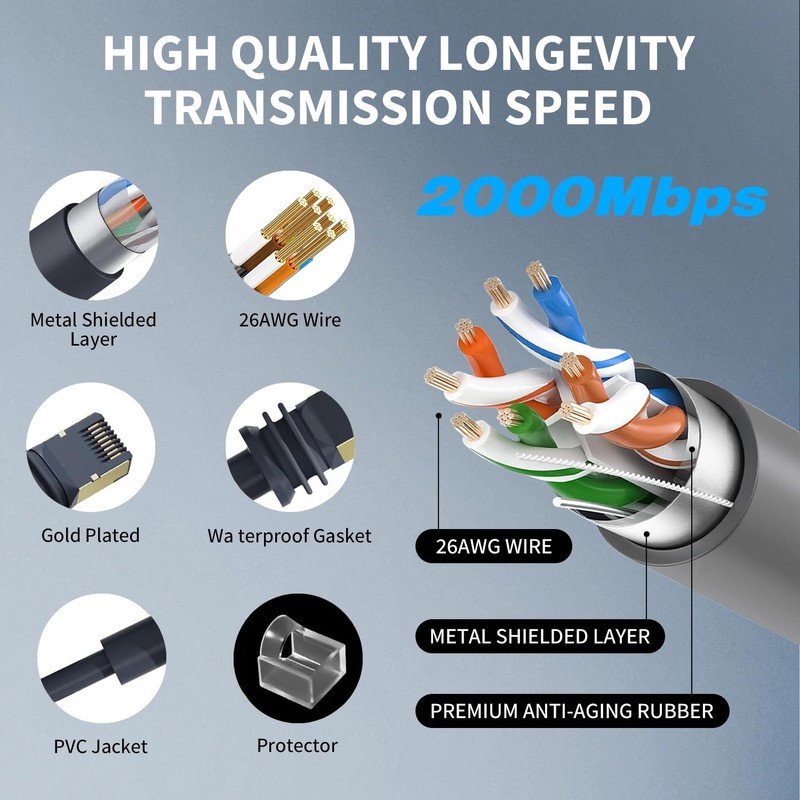 - Starlink v3 cable 75FT cat6 data transfer speed up to 2000Mbps, made of quality 26AWG Multi-core copper with metal shielded layer and sturdy PVC jacket for both indoor and outdoor stable network supply, provides streaming without lag for server applications and online high-definition video streaming etc.