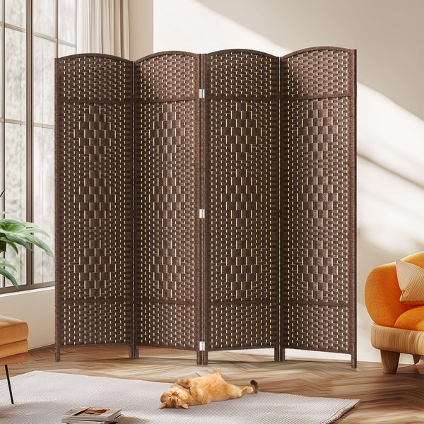JOSTYLE Room Divider 4 Panel Portable Room Divider Panel Wall, 6ft Tall Divider for Room Separation, Folding Privacy Screen Panel, Freestanding Partition Screen, Chestnut Brown