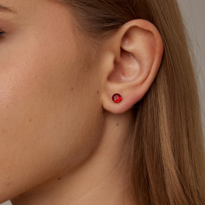 JotCa White Gold Cubic Zirconia Stud Earrings Hypoallergenic Stainless Steel CZ Earrings Multicolor Round Birthstone Stud Earrings for Women Birthday Jewelry Red