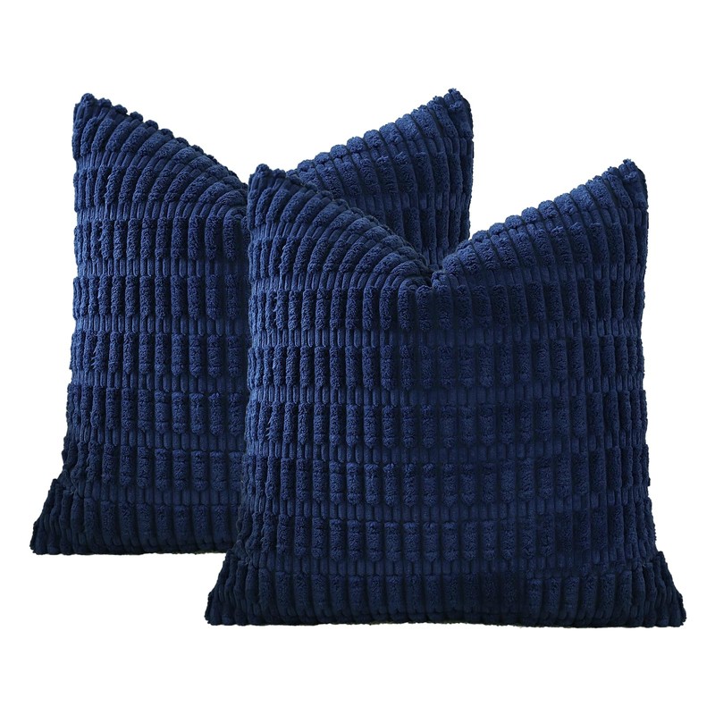 JOTOM Corduroy Soft Striped Decorative Throw Pillow Covers 24x24 Inch Square Cushion Covers 60x60 cm Boho Home Decor Pillowcases Cushion Case for Sofa Couch Living Room Bed Set of 2 (Navy Blue)