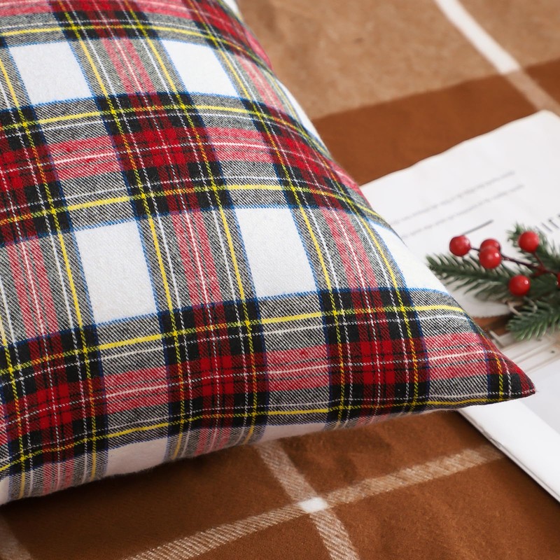 JOTOM Set of 2 Classic Plaids Cushion Covers 40x60 cm Christmas Scottish Tartan Plaid Soft Solid Decorative Throw Pillow Covers Home Decor Outdoor Cushion Case for Sofa Bedroom (Red White)