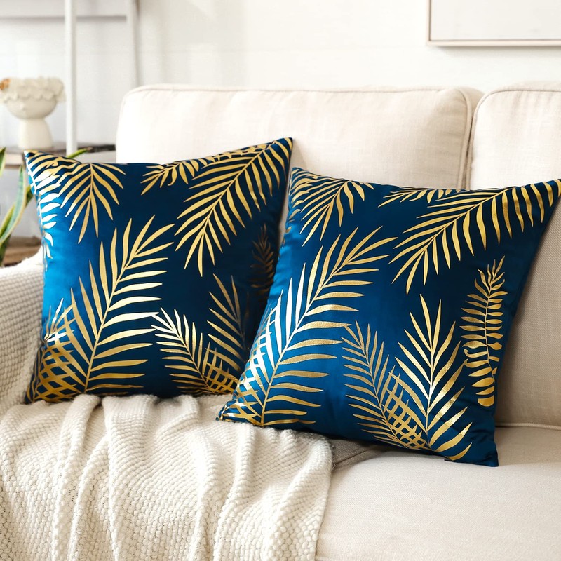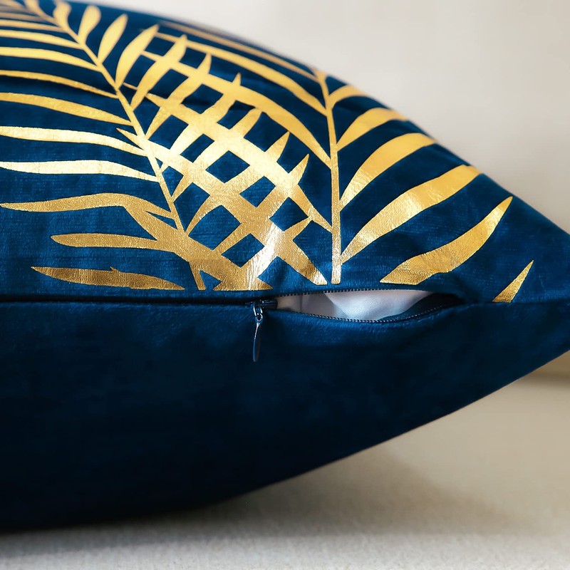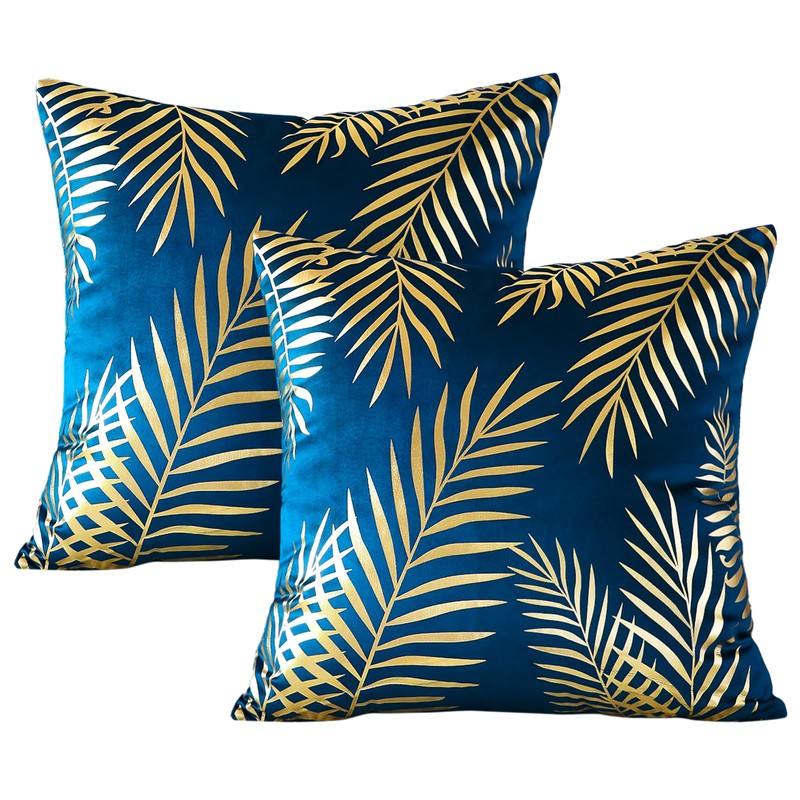 JOTOM Set of 2 Cushion Covers 50x50cm Decor Velvet Throw Pillow Covers Gold Leaves Decorative Pillow Cases Bronzing Flannelette Cushion Cover for Couch Bedroom Sofa Car Home Living Room Decor (Navy)